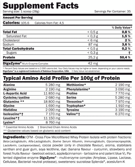 IsoPrime CFM Whey Isolate de Amix es una de las proteínas de mayor calidad del mercado. Ha sido fabricada con una tecnología de última generación para aportarnos un valor biológico muy alto y que conjuntamente con el entrenamiento, consigamos una definición muscular de una forma sana y segura.